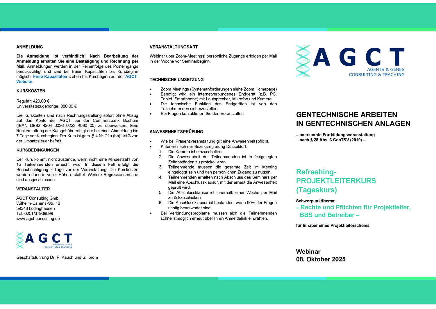 Erwerb der Gentechnik-Sachkunde -Nächstes verfügbares Webinar: Do./Fr. 06./07. November 2025