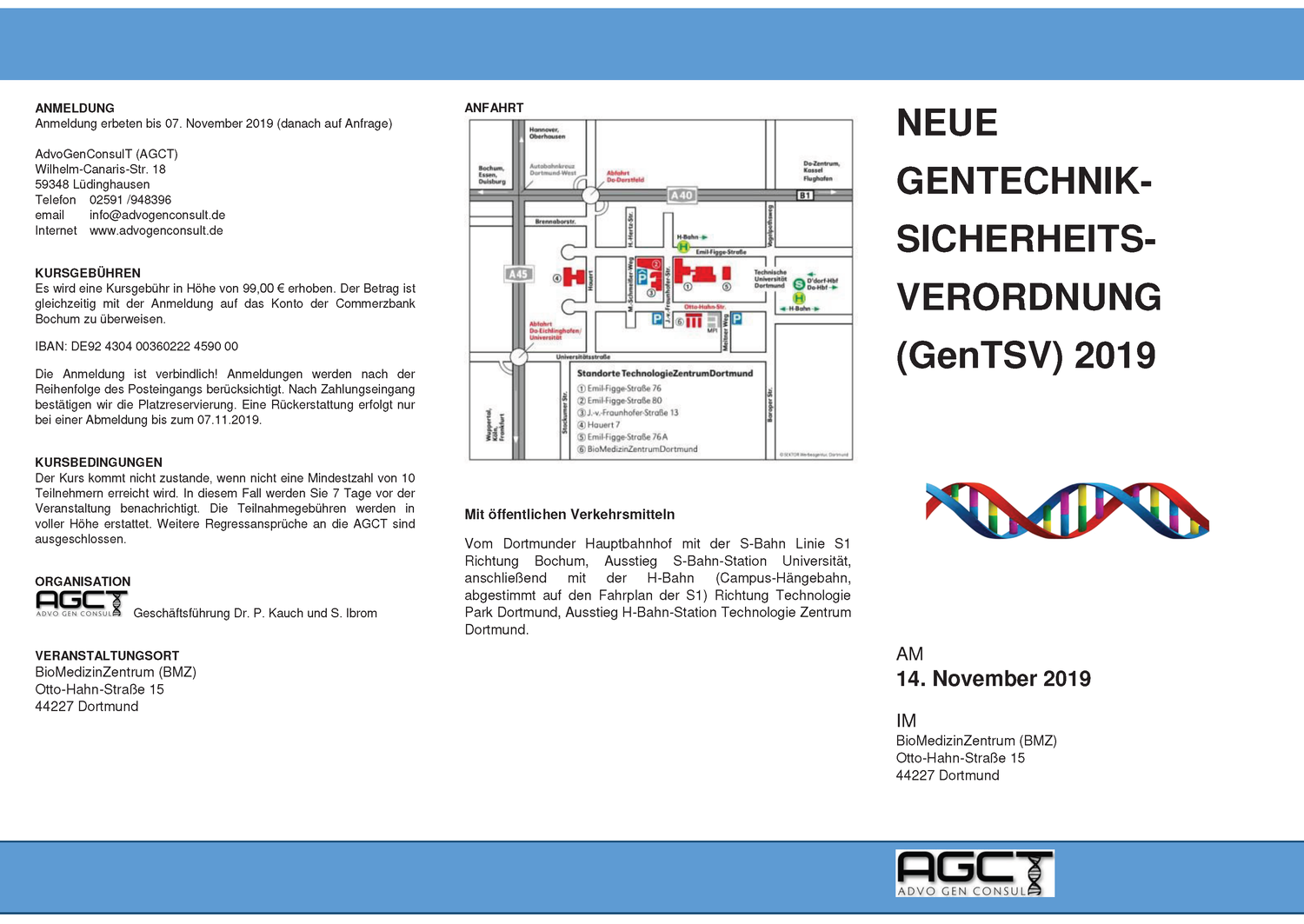 14.09.2019 Branchenevent in Dortmund - Neue Gentechnik-Sicherheitsverordnung (GenTSV) 2019