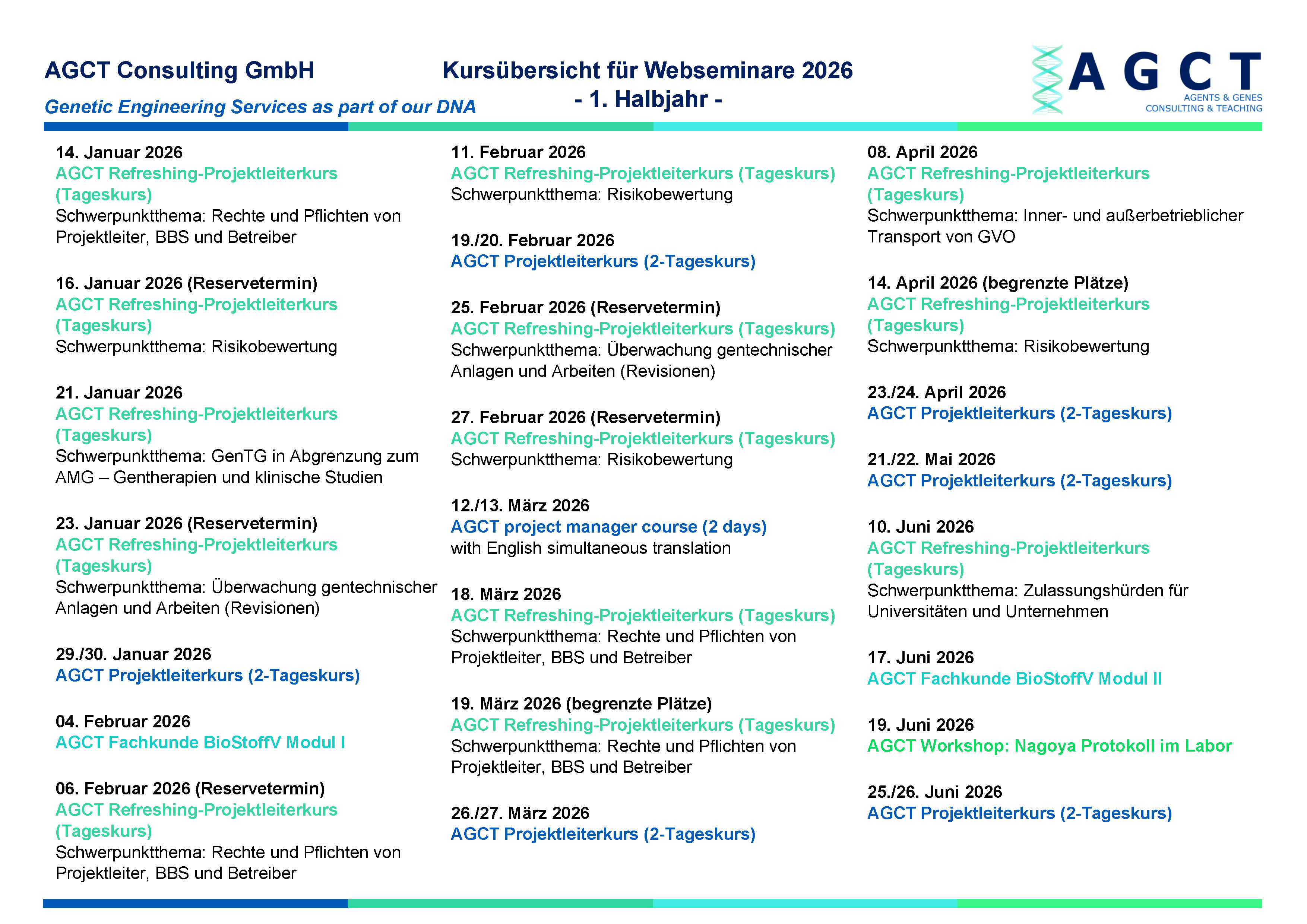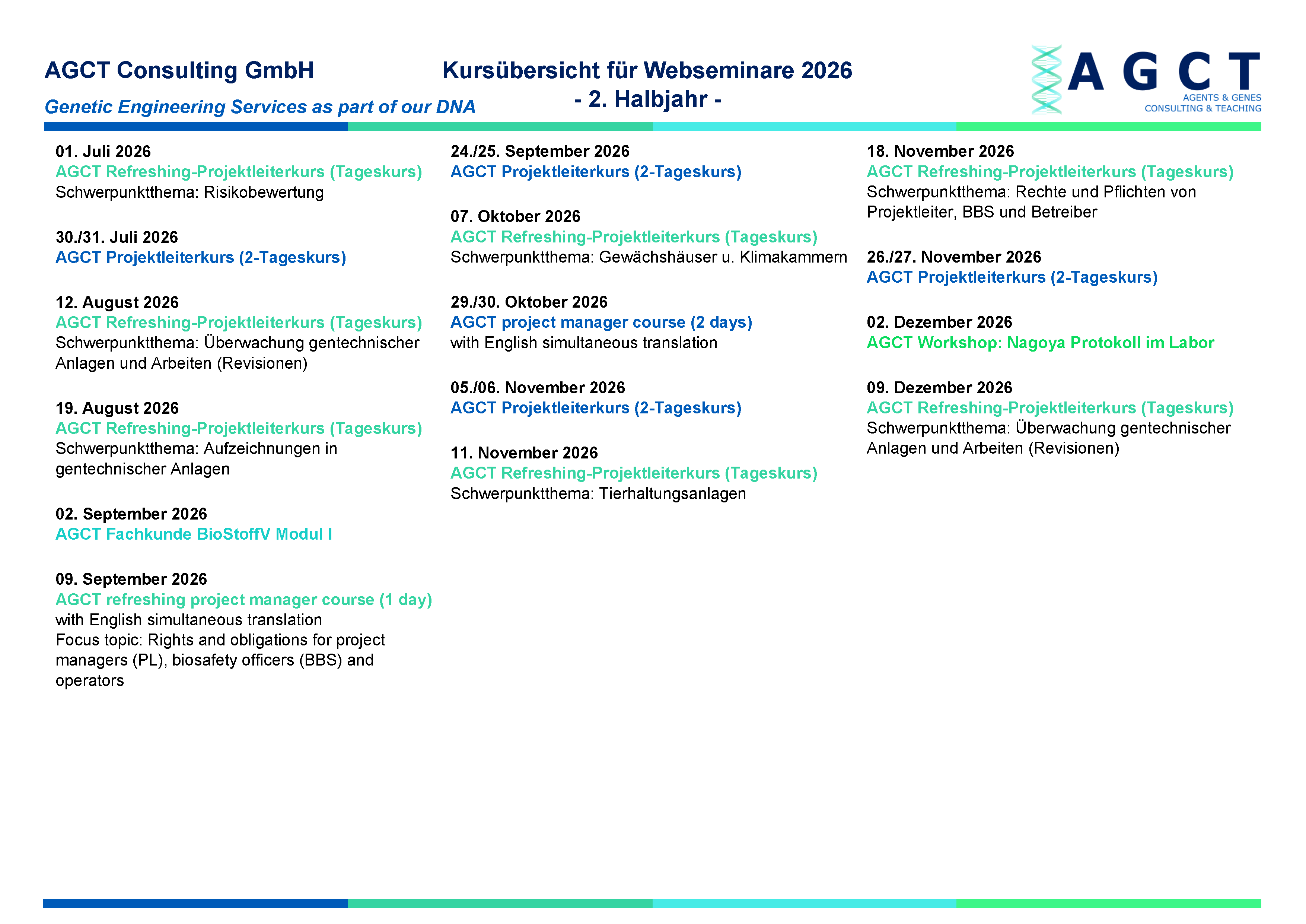 AGCT specialist courses acc. to BioStoffV